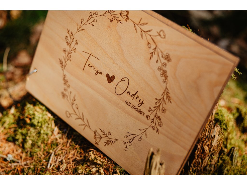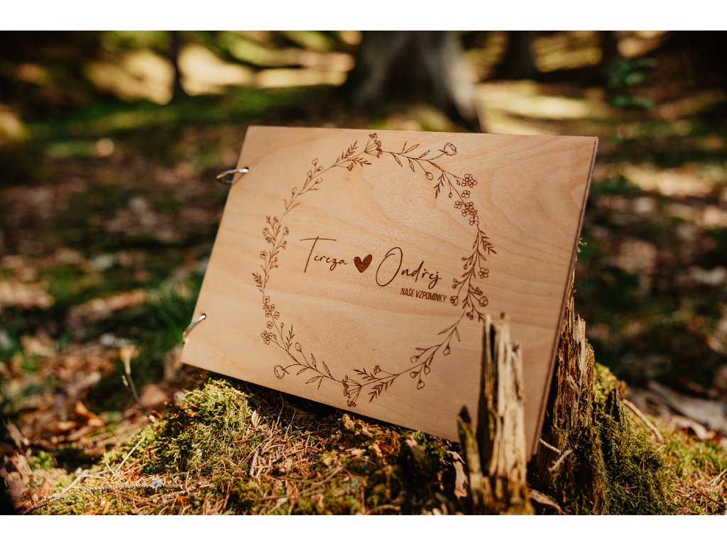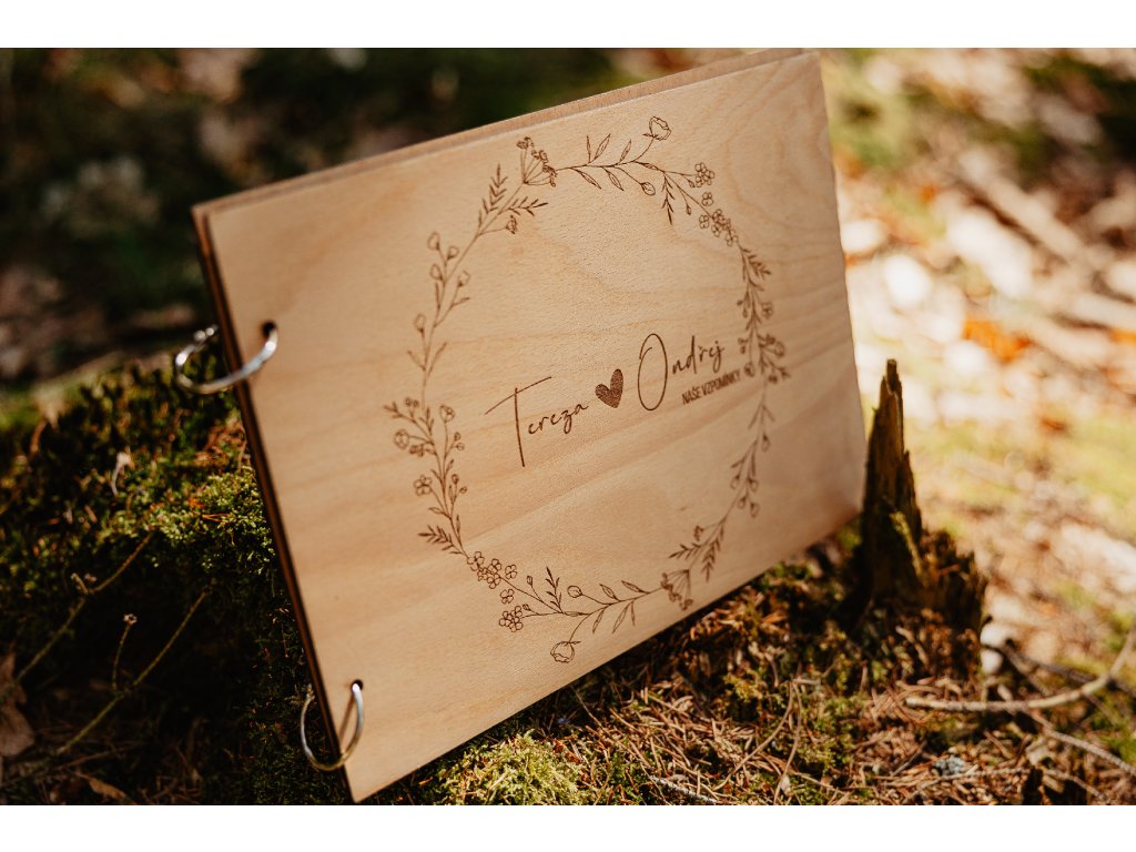 Toto dřevěné fotoalbum je dokonalým místem pro uchování vzpomínek na lásku a společné chvíle, které spojují novomanžele nebo zamilované páry. Design s květinovým kruhem je symbolickým vyjádřením věčné lásky, kterou můžete uchovat navždy. Album je vyrobeno z kvalitní dubové překližky a spojeno knihařskými kroužky, což zajišťuje jeho pevnost a dlouhou životnost. Uvnitř se nachází 10 černých fotopapírů ve formátu A4, které poskytují ideální prostor pro vaše vzpomínky.